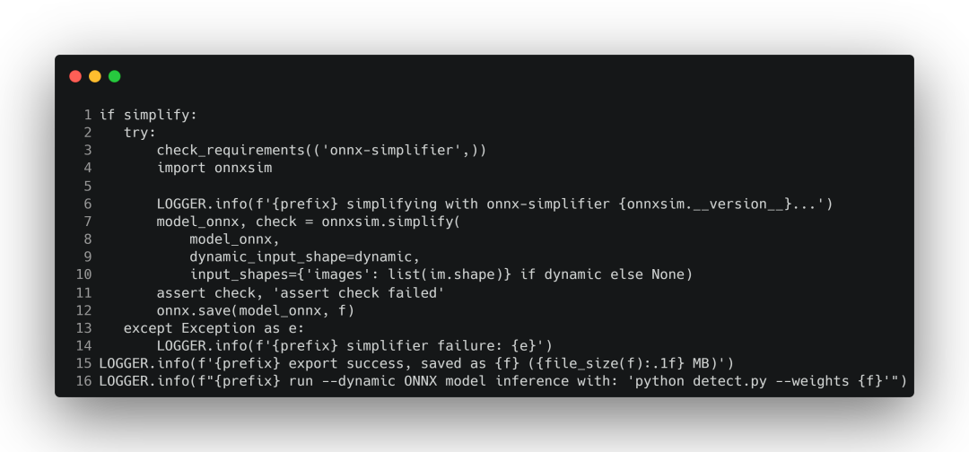 如果要精简onnx,就可以将simplify设置为True。设置为True之后,就会调用onnxsim来对原来onnx去除不必要的op操作,也叫去除胶水。在使用之前需要安装onnx-simplifier。