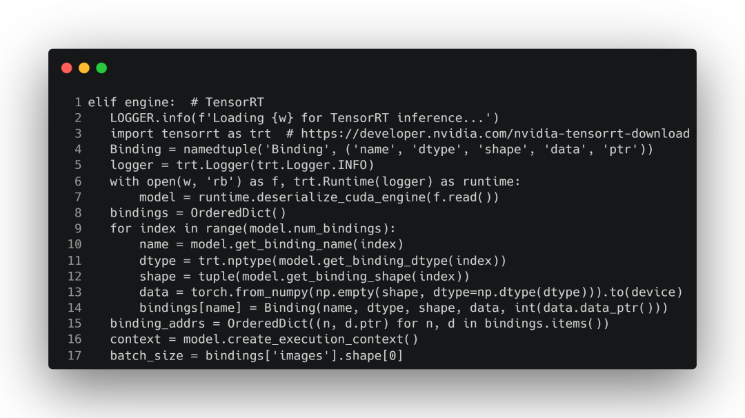 进入到DetectMultiBackend这个类中查看,直接跳转到构建engine的部分: