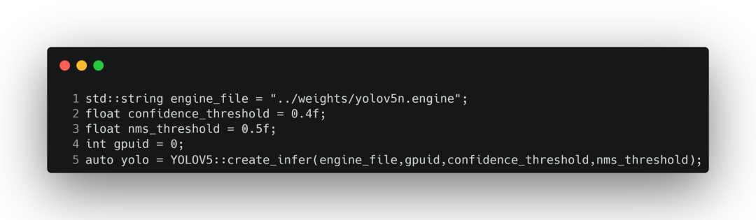 首先是进行一些模型的准备工作,包括设置nms阈值、置信度阈值、gpu设备的id,以及将引擎进行反序列化,用于后面的推理。