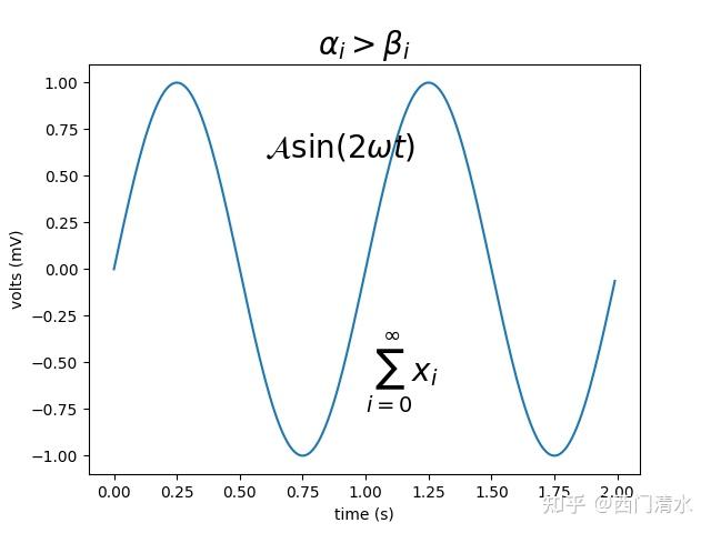 ),并用美元符号($)将数学文本括起来,如TeX中所示。常规文本和mathtext可以在同一个字符串中交错。Mathtext可以使用DejaVu Sans(默认),DejaVu Serif,计算机现代字体(来自(La)TeX),