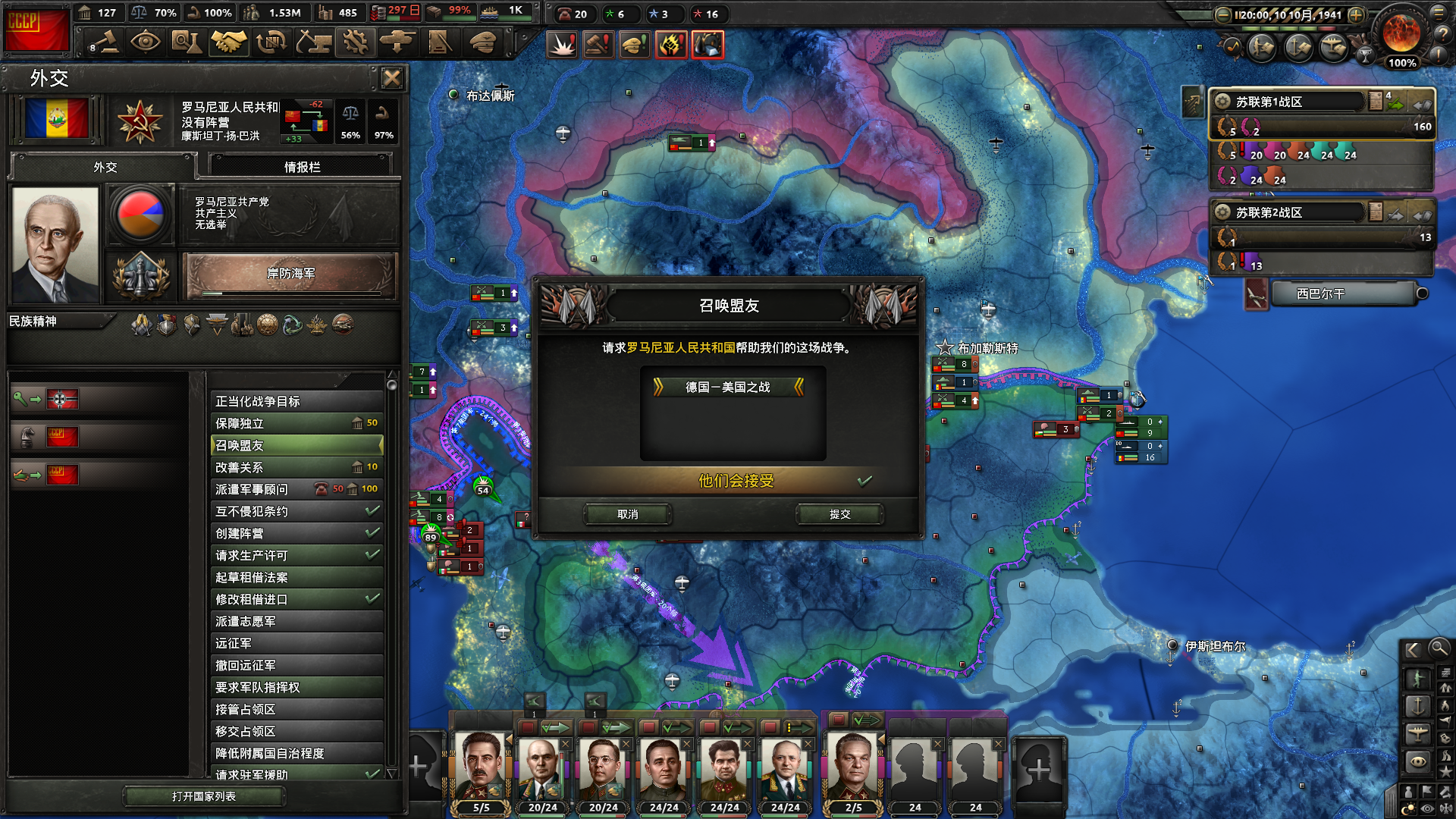 召唤罗马尼亚参战,帮他拿回北特兰西瓦尼亚、多布罗加: