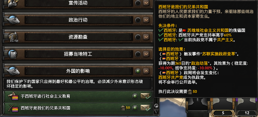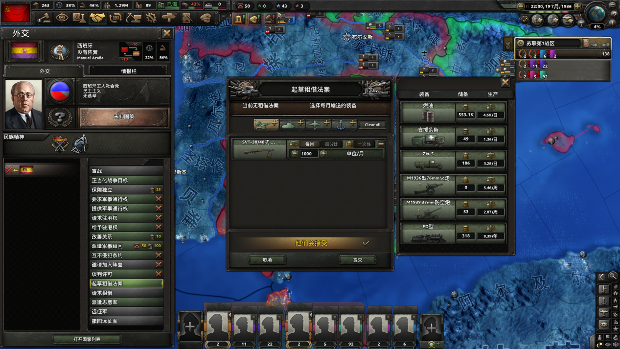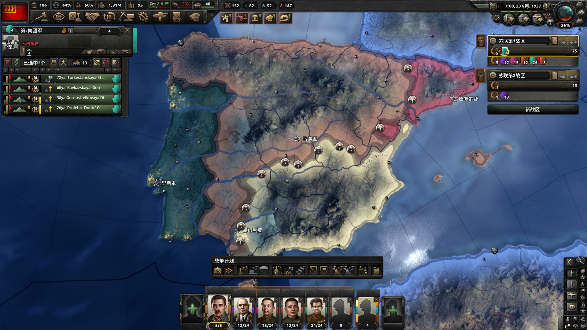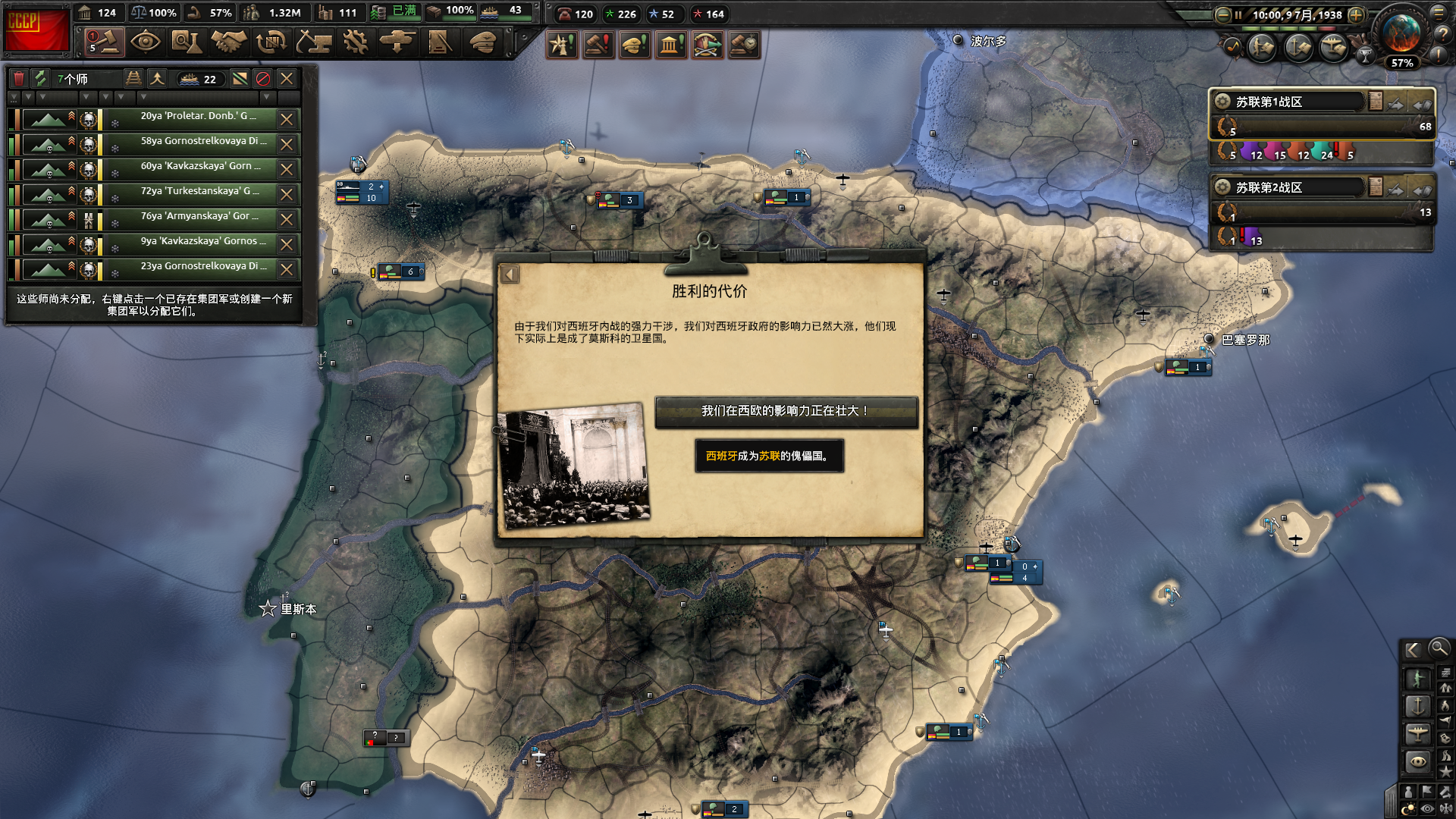 向西班牙共和军派出6个山地师(满级)和志愿航空队(全部满级战斗机):