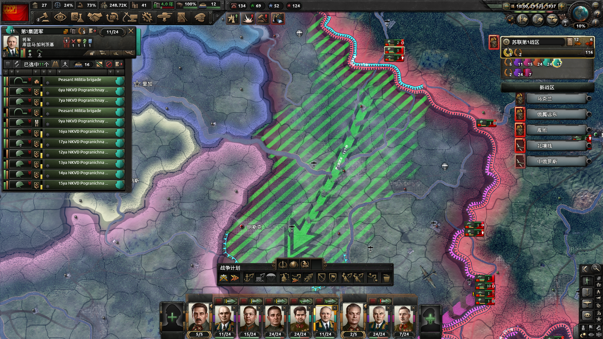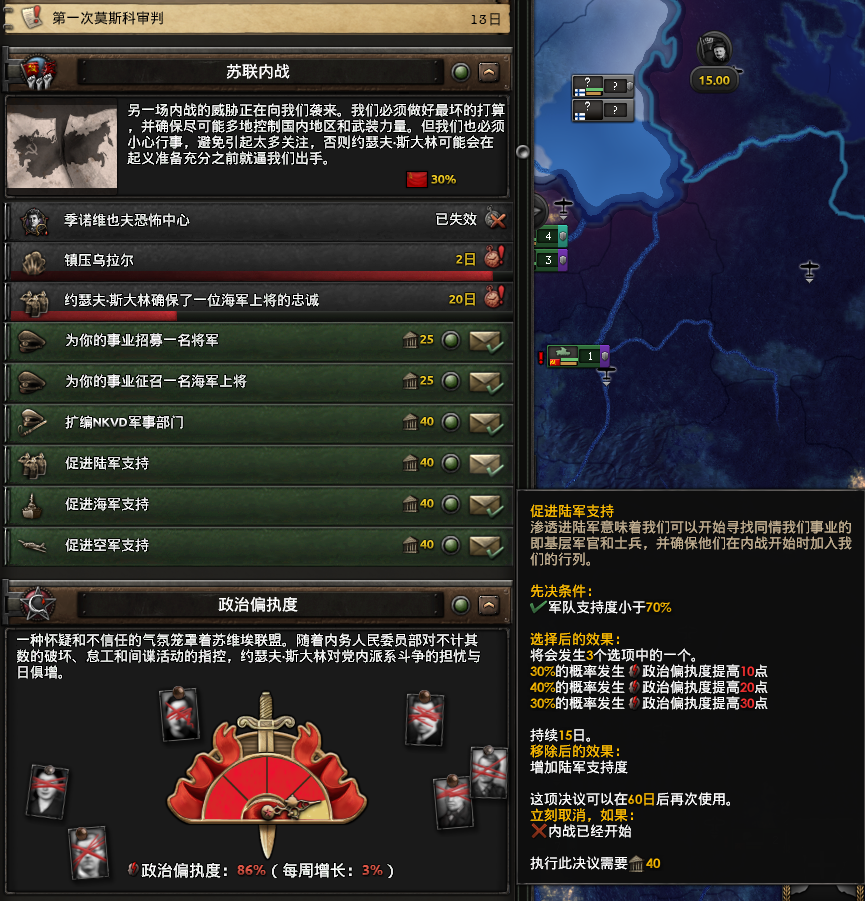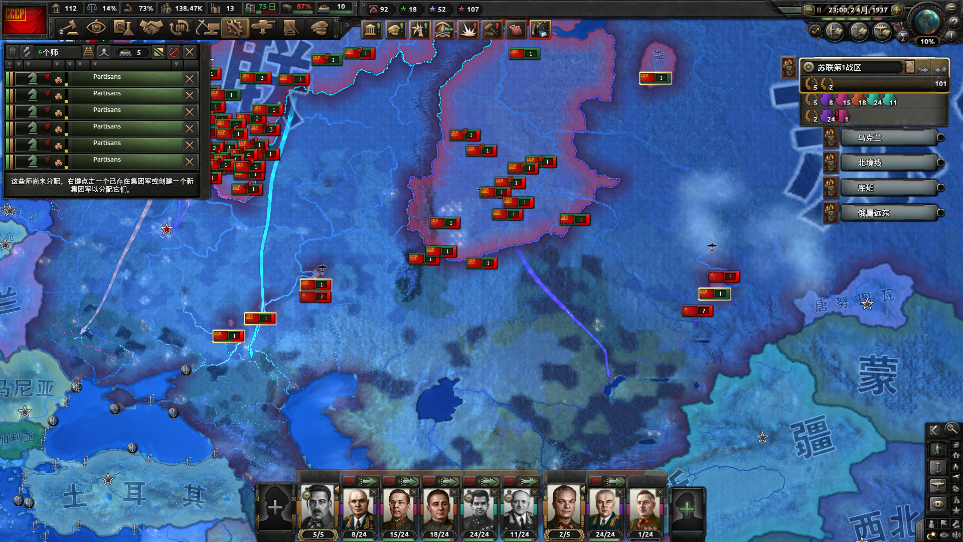 布哈林的内战线,最后删部队,同样可以骗日本宣你,开总动员,吞日本,大概也能和斯大林开局宣土耳其一样,41年能到400厂,关键你有六槽,意味着你可以更多的越级研究科技
