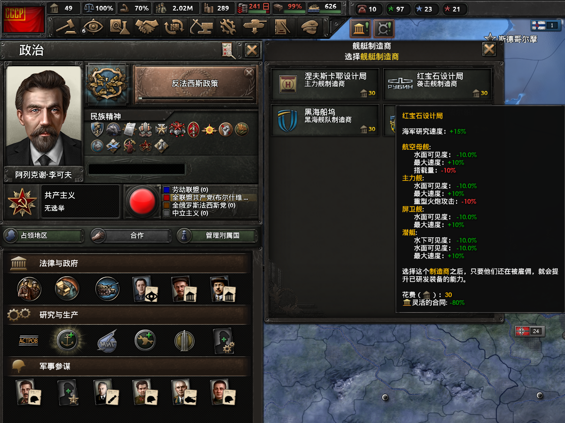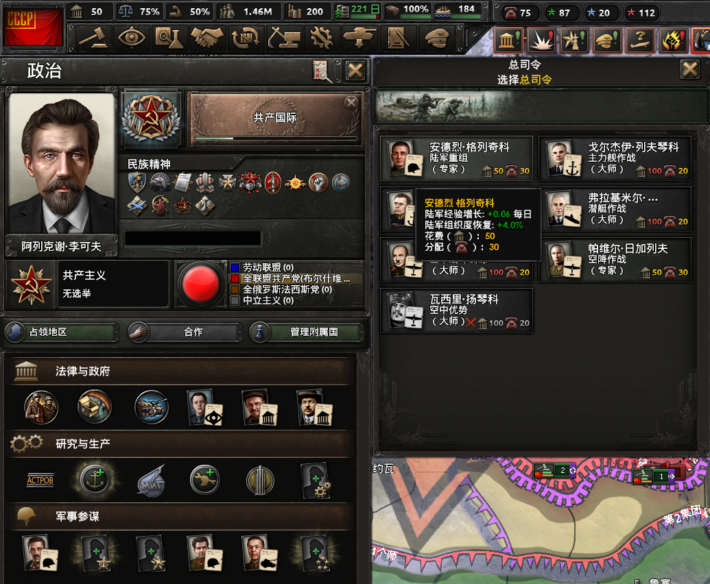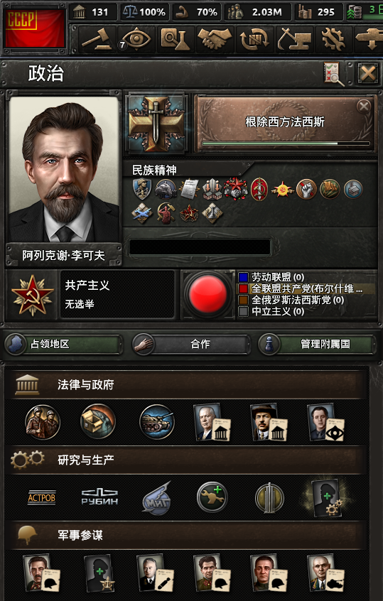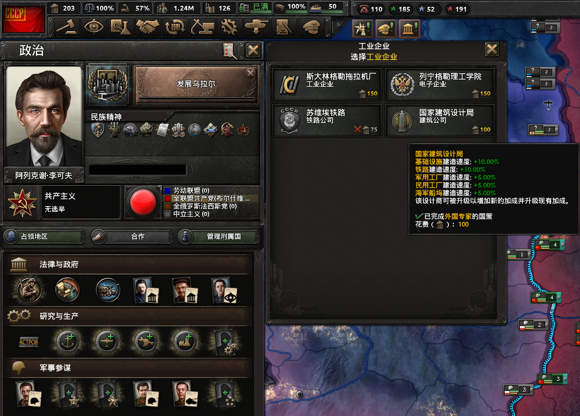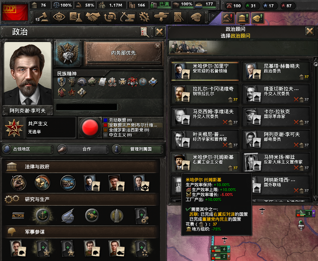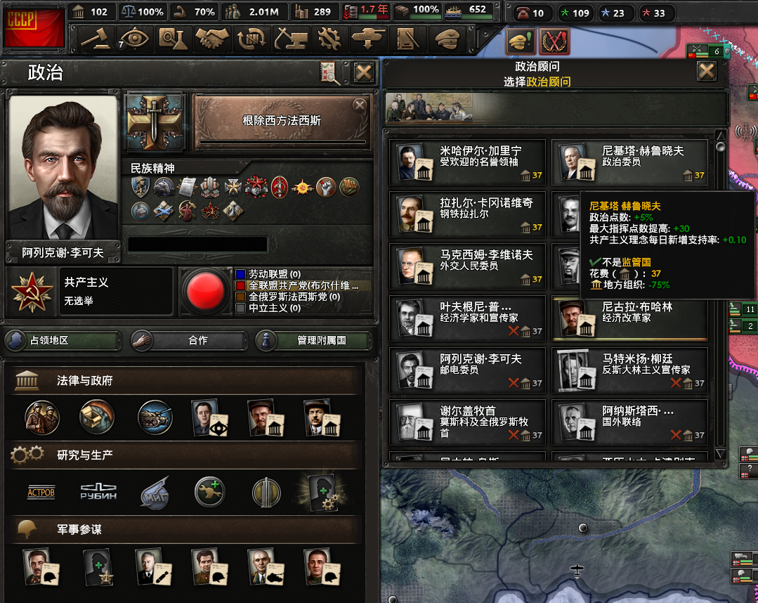 这个版本,斯大林,可以飞快加自治度,有科研加成(半价)
