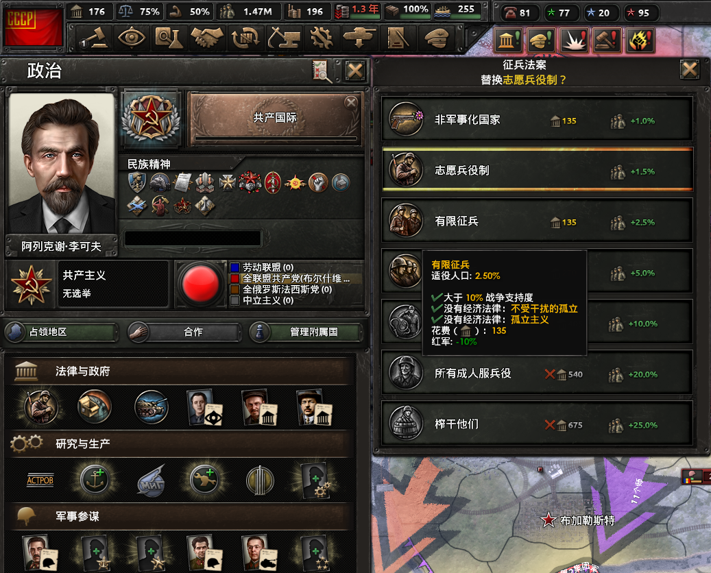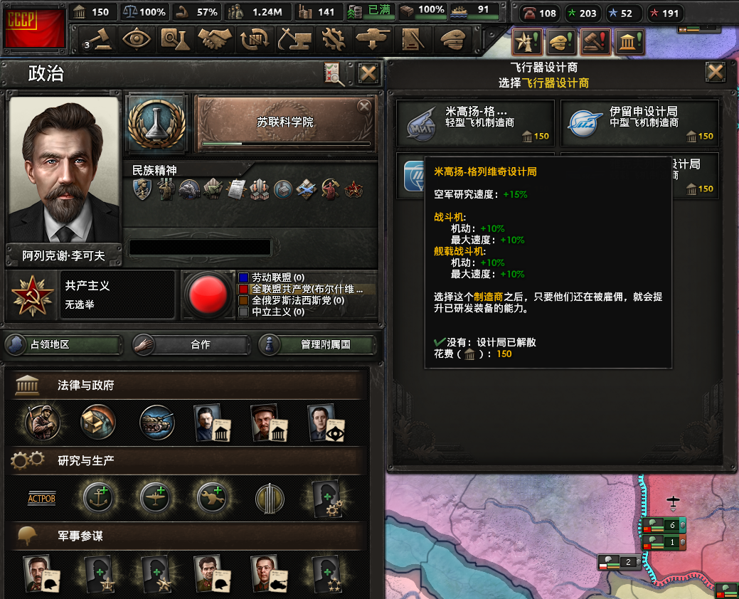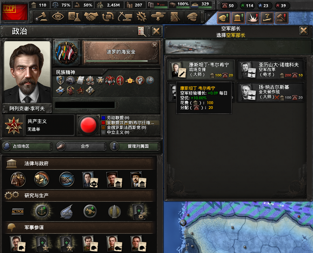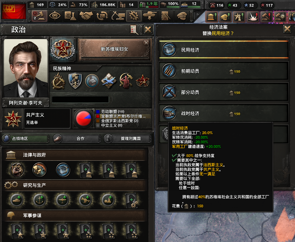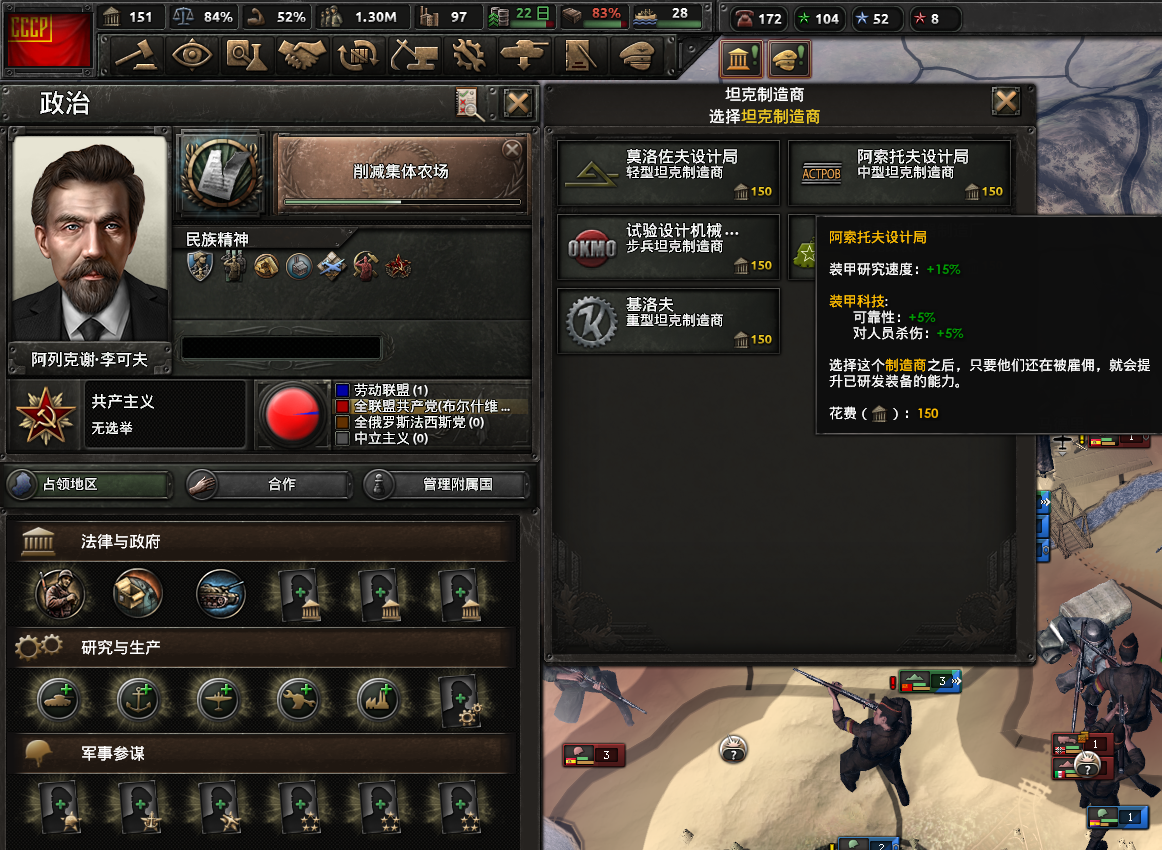 这个版本,斯大林,可以飞快加自治度,有科研加成(半价)