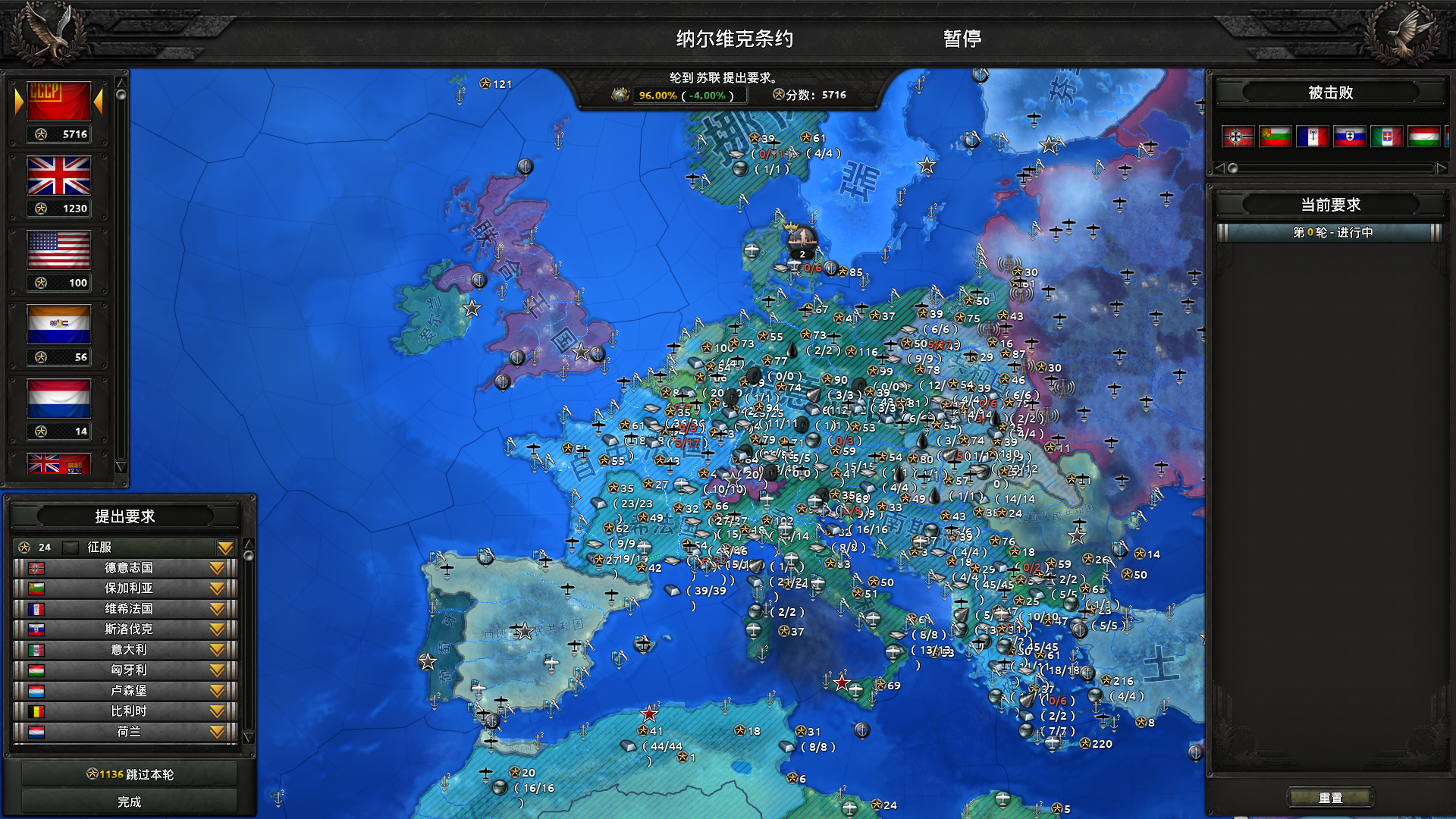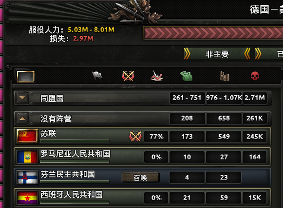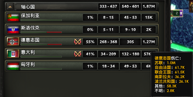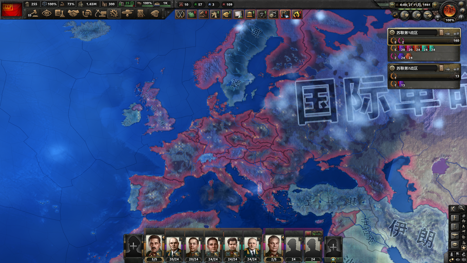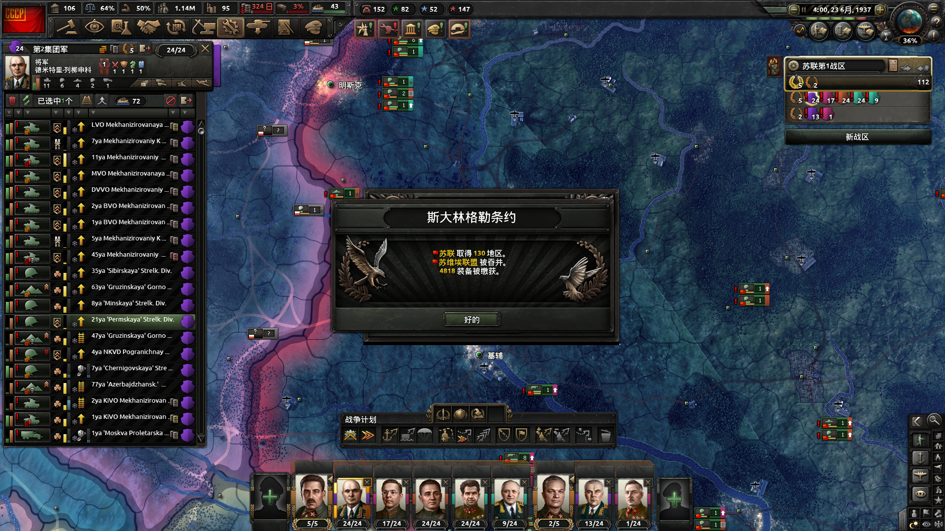 ④有些人不是唯物质论吗?觉得300个厂比不过400个厂。我现在用的不到300个厂、仅用118天、极低战损和超高战损比就打败了满加强德意,并且赤化了所有参战的欧洲大陆国家,还没有让同盟国有机会拿走任一一块领土。我还没有用内战跑马、宣美国跳经互会、早战土耳其和日本、切换总动员等投机取巧的方法。