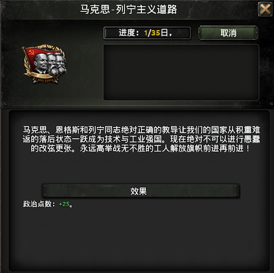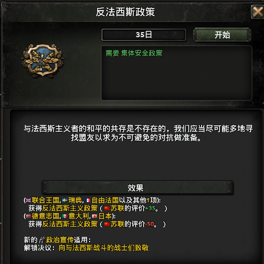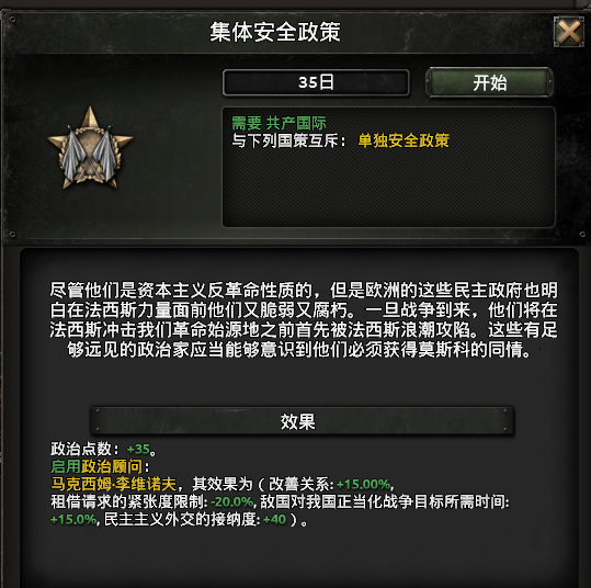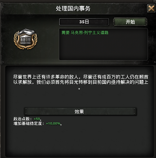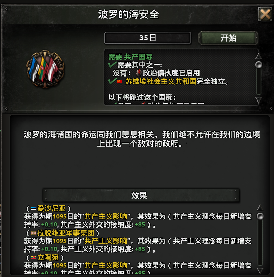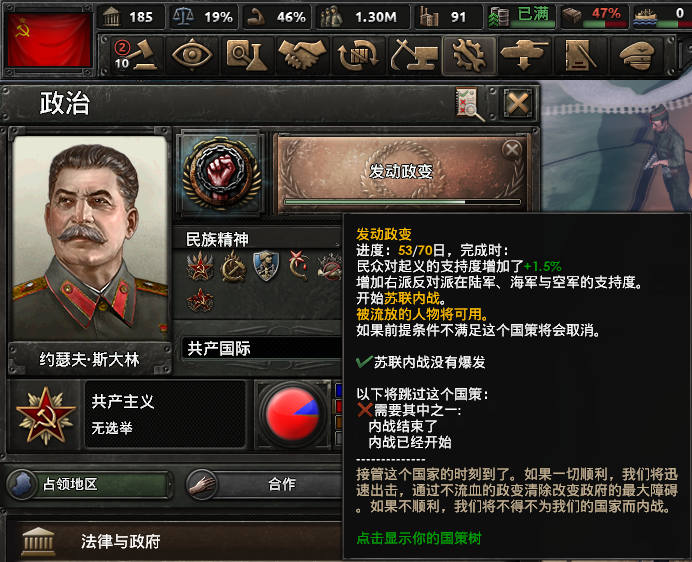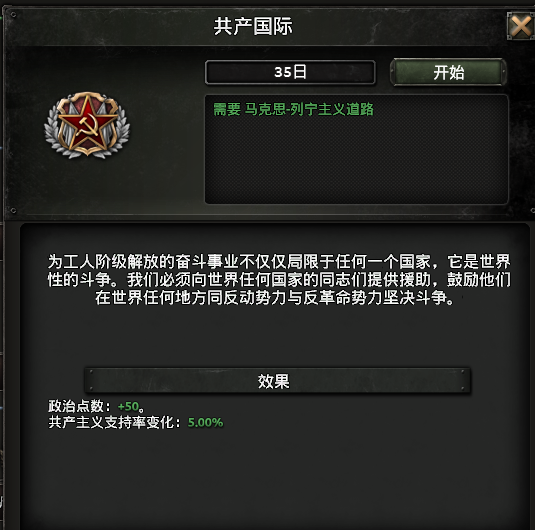 由于此时苏联未创建阵营,为直观展示,我用控制台跳国策到<国际革命马克思主义>