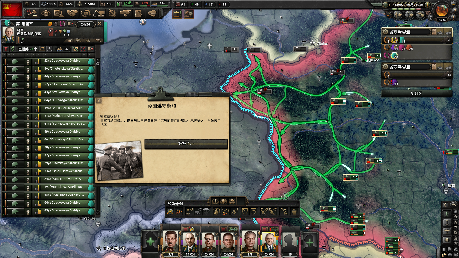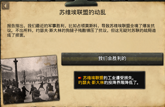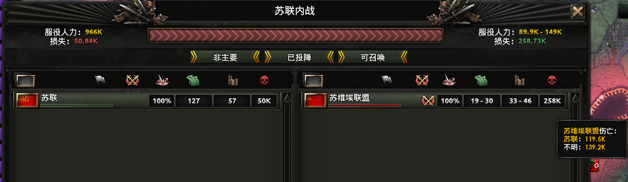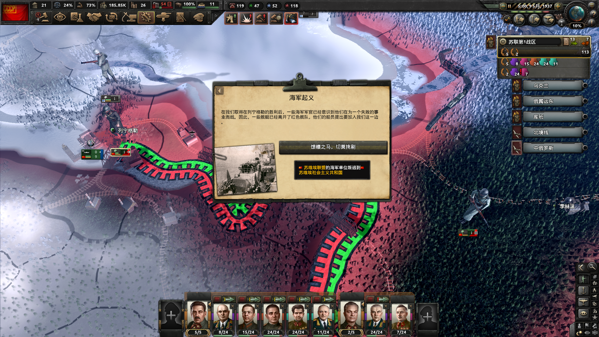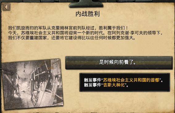 内战只打了78天,十分轻松、顺畅,几乎是在跑马(没有用任何投机取巧的方法),苏德战争只打了118天,钢铁洪流平推的感觉十分爽快,赤化了包括波兰、挪威在内的所有参战的欧洲大陆国家,同盟国没有机会拿走任意一块领土。