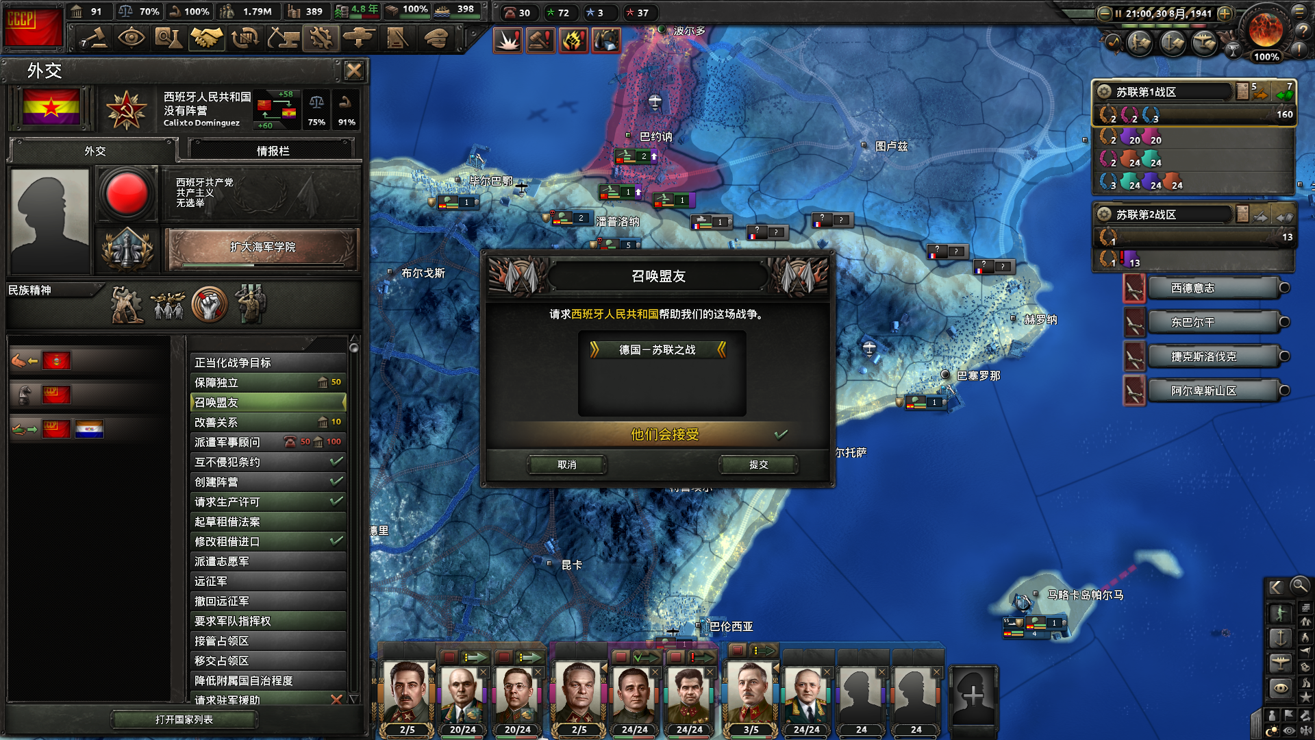 1941.8.30:拿下波尔多地区,召唤西班牙参战