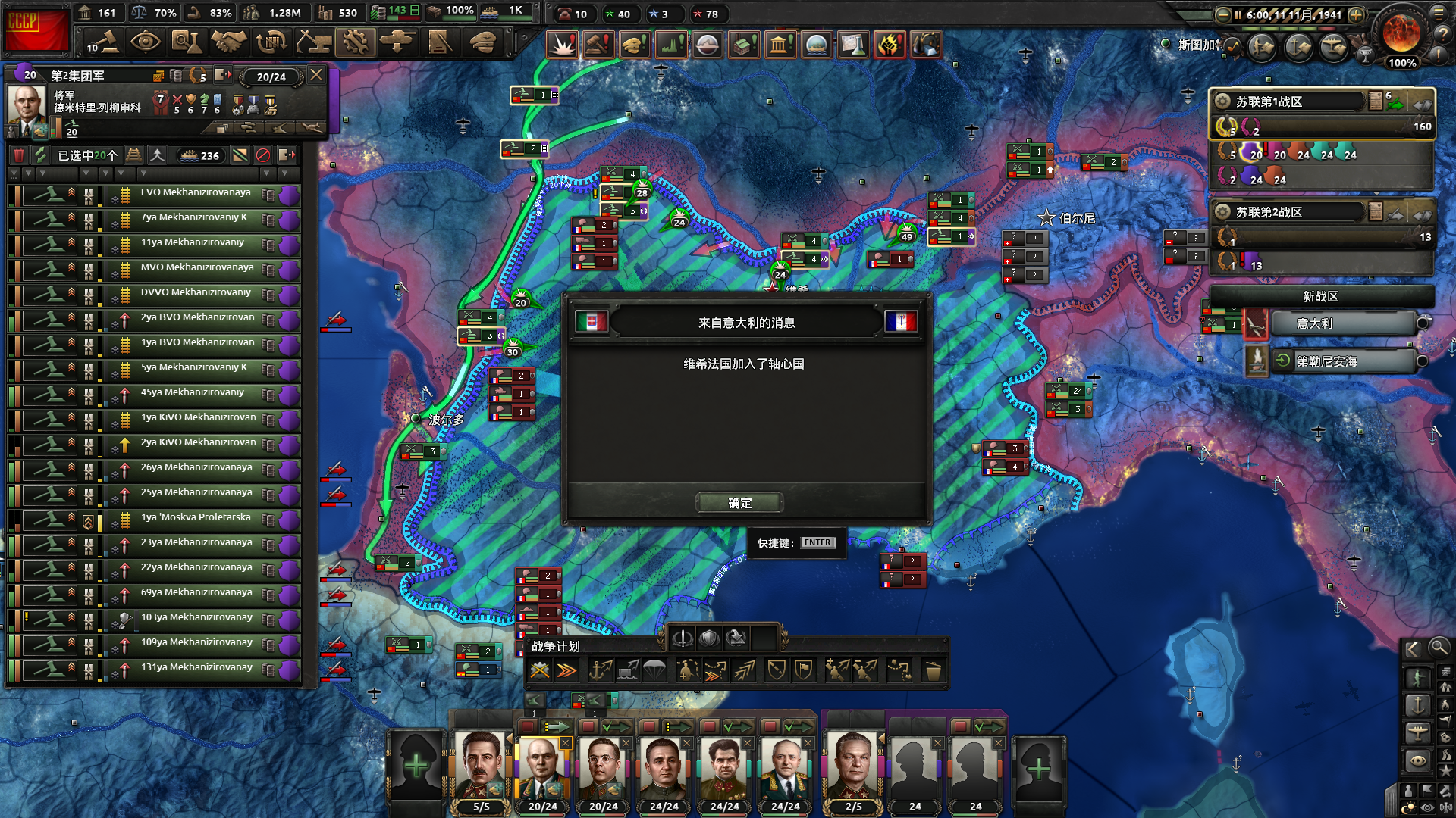 1941.10.4:攻入罗马,对意大利的进攻可以暂时停下来了,现在注意力要放在其它地方,要确保轴心国投降前(意大利投降)占领几乎所有的欧洲大陆地区