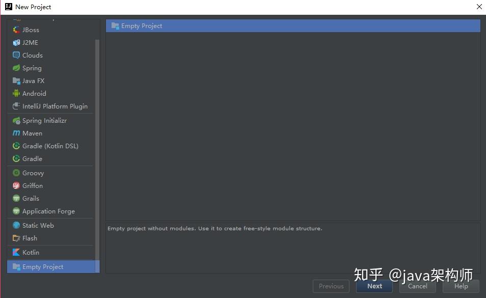打开 IDEA, File -> New -> New Project,然后选择 Empty Project,如下。