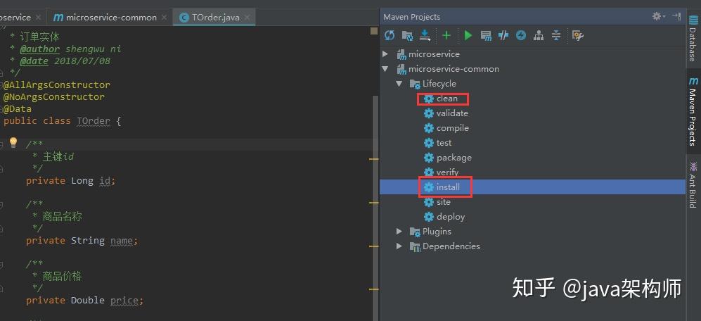 lombok 依赖主要是用在实体类上,我们不用自己去定义构造方法,不用自己去生成 get 和 set 方法了,很方便。引入了依赖之后,我们去创建一个订单实体类。