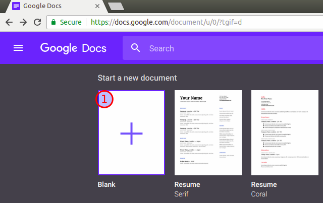 从 Chrome 打开 https://docs.google.com 并创建一个空白文档。