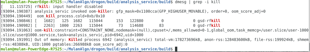 如果你观察到现象的时候你的JVM进程已经消失了,有概率是被linux oom_killer kill掉了,可以通过以下命令获得相关日志: