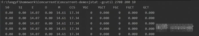 查看GC堆百分比占比情况jstat -gcutil 2708 200 3
