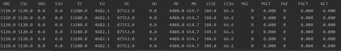 S0C幸存0区容量、S0U幸存0区已使用量、EC Eden区总量、EU Eden区已使用量、OC老年区总容量、OU老年区已使用总量、MC方法区总量、MU方法去已使用量、CCSC压缩空间总量、CCSU压缩已使用量、YGC 年轻代垃圾回收次数、YGCT 年轻代执行垃圾回收消耗时间、FGC Full GC垃圾回收次数、FGCT Full GC垃圾回收消耗时间、GCT 垃圾回收消耗总时间。