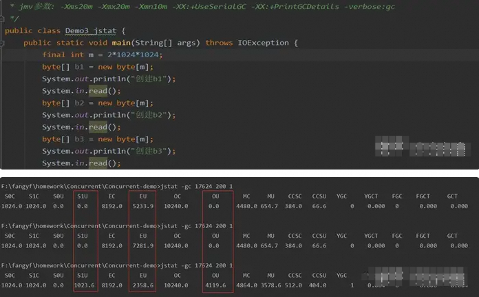 VMID是进程id,interval是打印间隔时间(毫秒),count是打印次数(默认一直打印)。