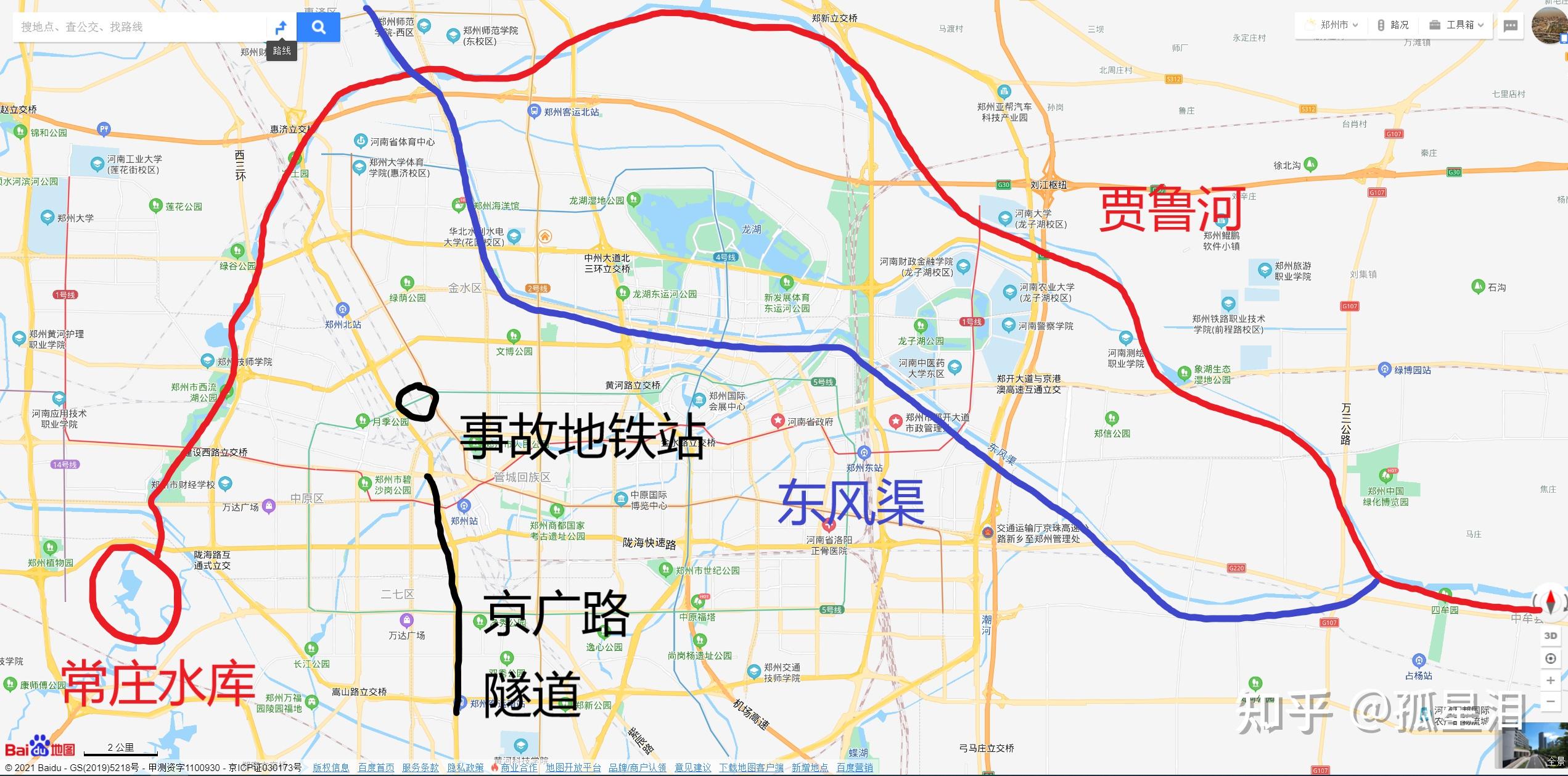 常庄水库和贾鲁河,是完整的绕过了郑州市区。